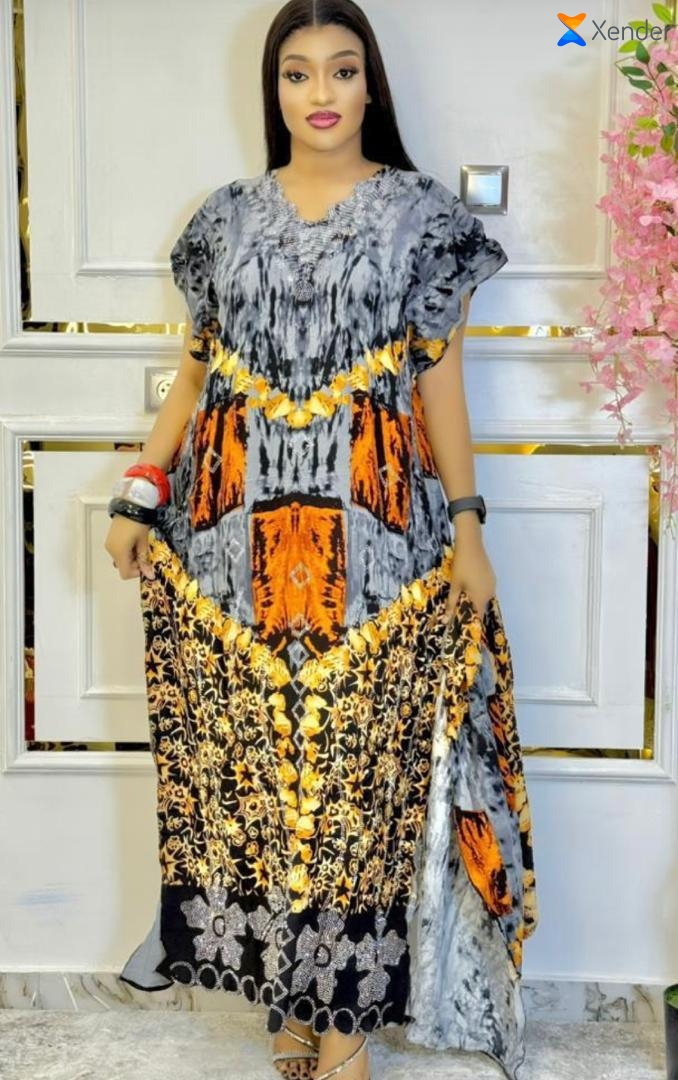 Découvrez la Robe Maxi « Sunshine & Cendres », une pièce maîtresse qui allie l’artisanat moderne du tie-dye à une silhouette traditionnelle africaine.